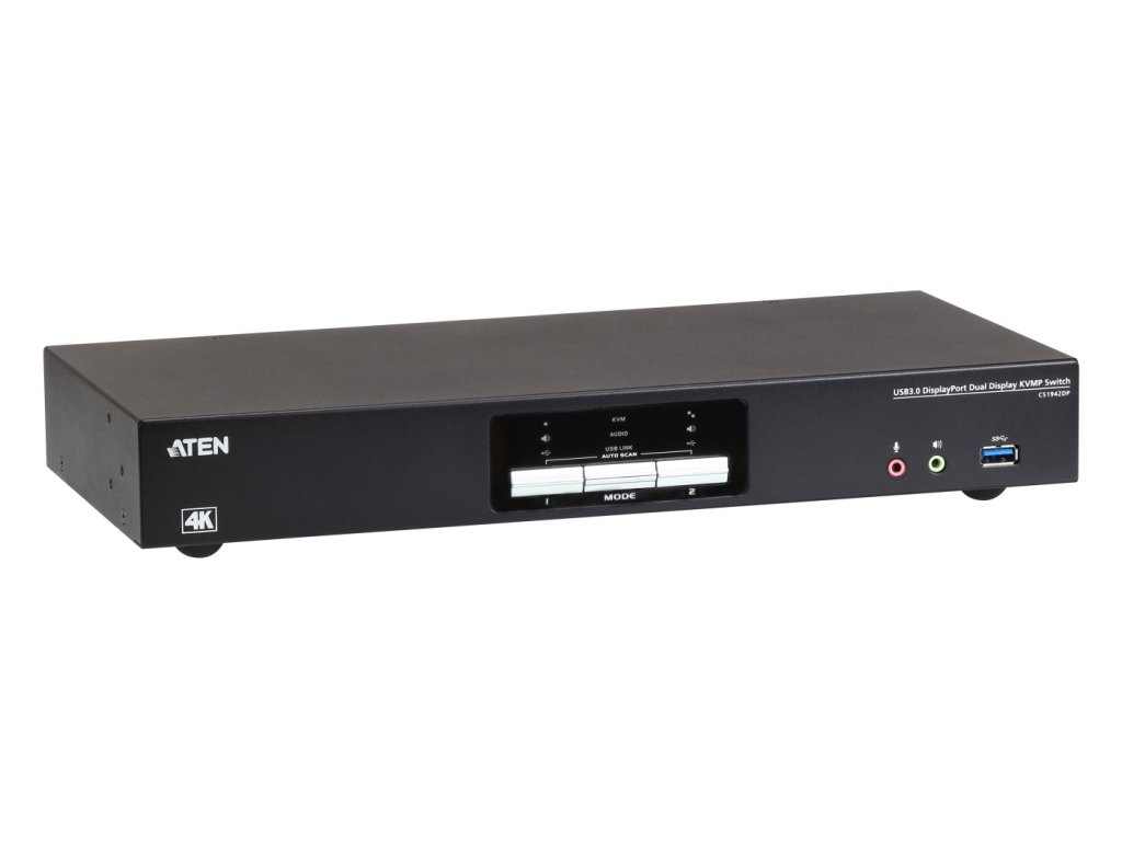 ATEN 2-port USB3.0 4K DisplayPort Dual Display KVMPPřepínač KVM ATEN CS1942DP pomáhá organizovat pracovní plochu. Zvláště při správě multimediální pracovní stanice ve velké organizaci nabízí CS1942DP uživatelům okamžitý přístup ke dvěma počítačům,
