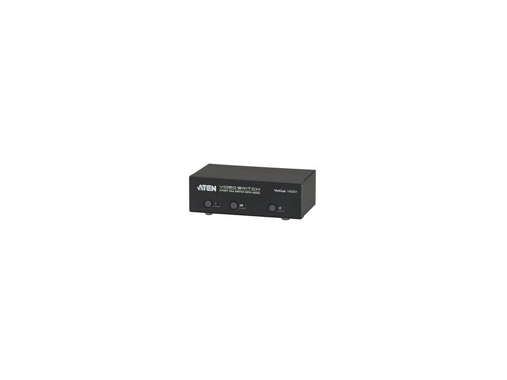 ATEN 2-port VGA Video/Audio elektronický přepínačPřepínač Aten VS-0201 umožní připojit 2 zdroje signálů VGA a audia a přepínat je na 1 zobrazovací jednotku(monitor). Zařízení je vhodné např. na prezentace nebo do výcvikových objektů.