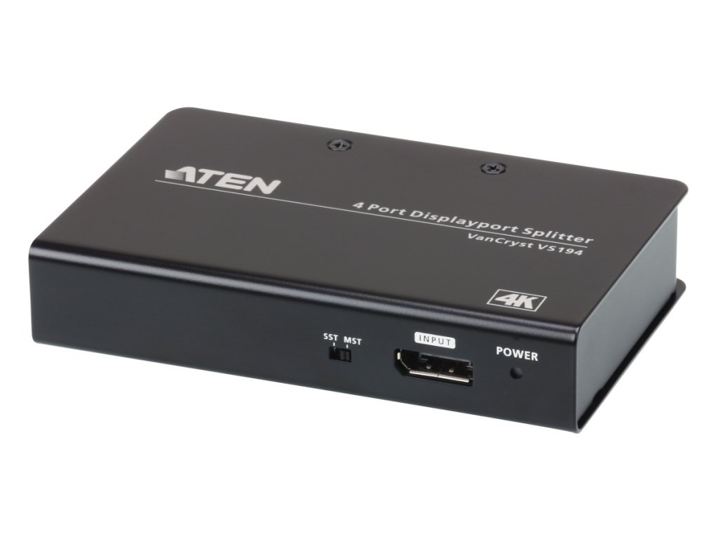ATEN 4 port DisplayPort rozbočovač 4K@60Hz, SST/MST funkceVS194 4 portový 4K DisplayPort splitter je ideálním řešením pro každého, kdo potřebuje poslat jeden zdroj videa s vysokým rozlišením DisplayPort na čtyři DisplayPort displeje. VS194 může obraz nejen rozdělit, ale také rozšířit