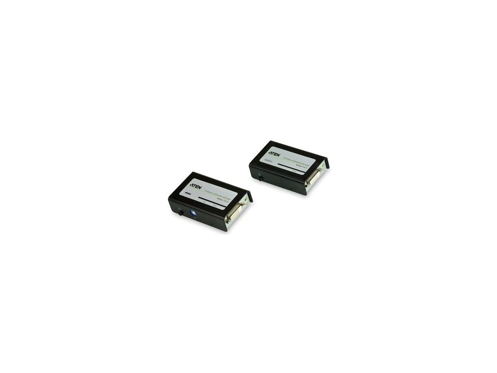 ATEN DVI Dual Link Video/Audio Extender až 60m po RJ-45, až 2560x1600 rozlišení VE602 (sada VE602T + VE602R)VE-602 DVI Video/Audio Extender umožňuje prodloužit vzdálenost mezi zdrojem DVI signálu a monitorem až o 60m, po 2x kabelu RJ-45 Cat5E/Cat6. VE602 také prodlužuje stereo audio signál. DVI zdroj (počítač nebo DVD přehrávač) připojíte do VE602T, které posílá DVI signál do DVI displaye pomocí VE602R. VE602T a VE602R se propojuje 2x standardním Cat 5e nebo Cat 6 kabelem.