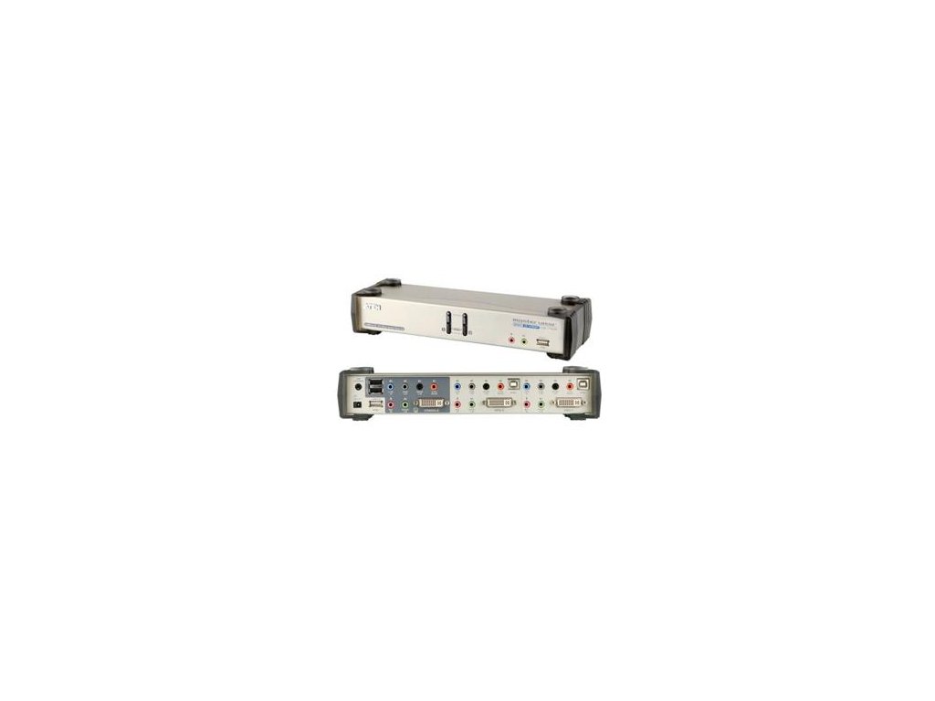 USB DVI Dual Link KVMP přepínač kombinuje funkce 2 portového KVM switche a 2 portového USB Hubu s obrazem digitální kvality DVI a 7 kanálovým audiem. Podporuje také funkce jako 120Hz 3D display, podporu herních klávesnic, přepínání portů pomocí myši. Jedna USB konzole s DVI monitorem kontroluje dvě PC.
