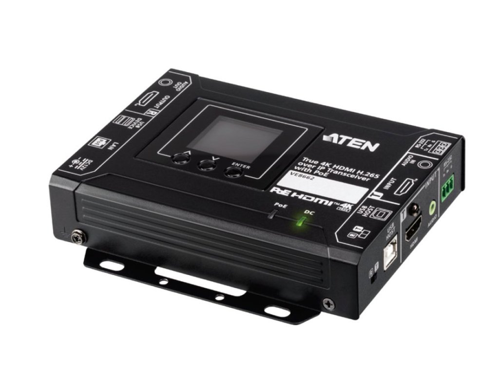 ATEN VE8662 True 4K HDMI H.265 over IP transceiver s PoE kombinuje funkce vysílače a přijímače v jedné jednotce, která nabízí flexibilní nasazení a snadnou konfiguraci pro různá AV řešení.