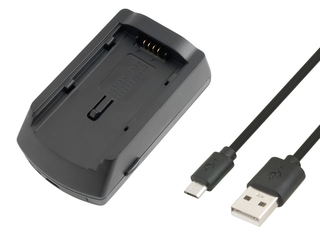 Nabíječka s Micro-USB vstupem pro baterie do fotoaparátů a videokamer.Vhodné pro produktová čísla: