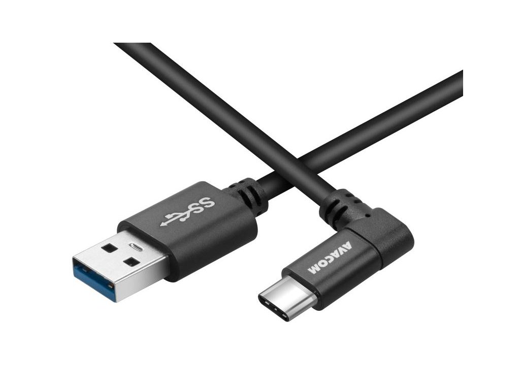 AVACOM datový a nabíjecí kabel USB - USB Type-C, 100cm, konektor v úhlu 90°, černý