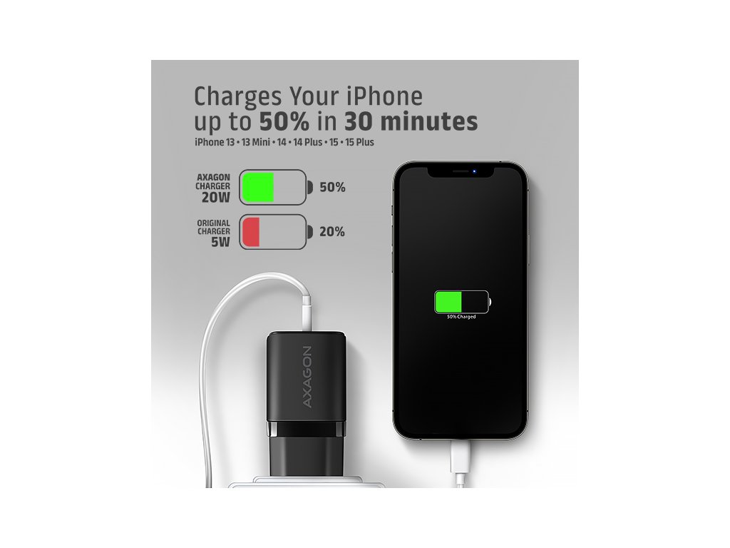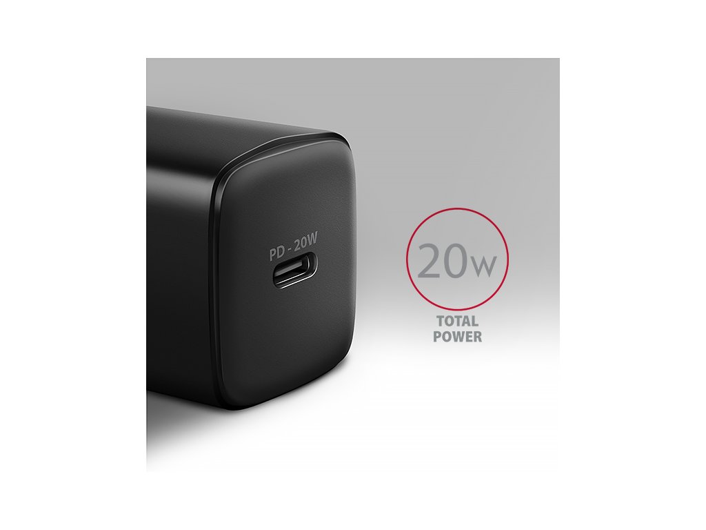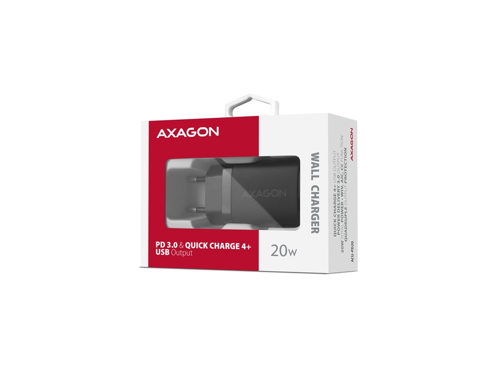 AXAGON ACU-PD20, nabíječka do sítě 20W, 1x port USB-C, PD3.0/PPS/QC4+/AFC/Apple, černá
