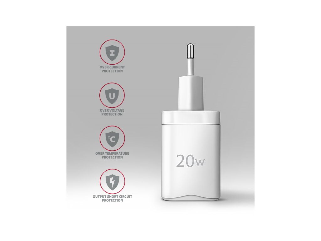 Pokročilý systém ochran na výstupu nabíjecího adaptéru chrání nabíjené zařízení před poškozením. Funkce nabíječky také zajistí rozpoznání nabíjeného zařízení a zvolení optimální rychlosti a průběhu nabíjení.