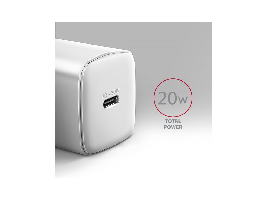 AXAGON ACU-PD20W, nabíječka do sítě 20W, 1x port USB-C, PD3.0/PPS/QC4+/AFC/Apple, bílá