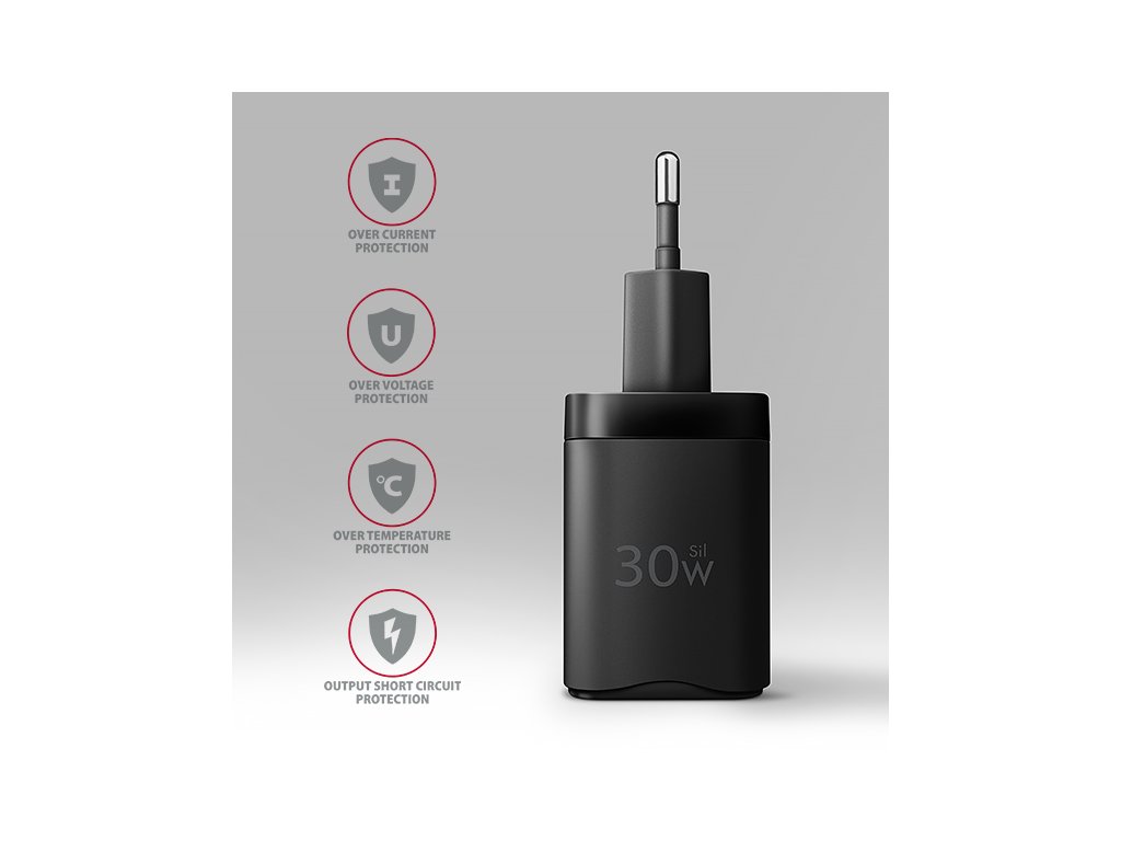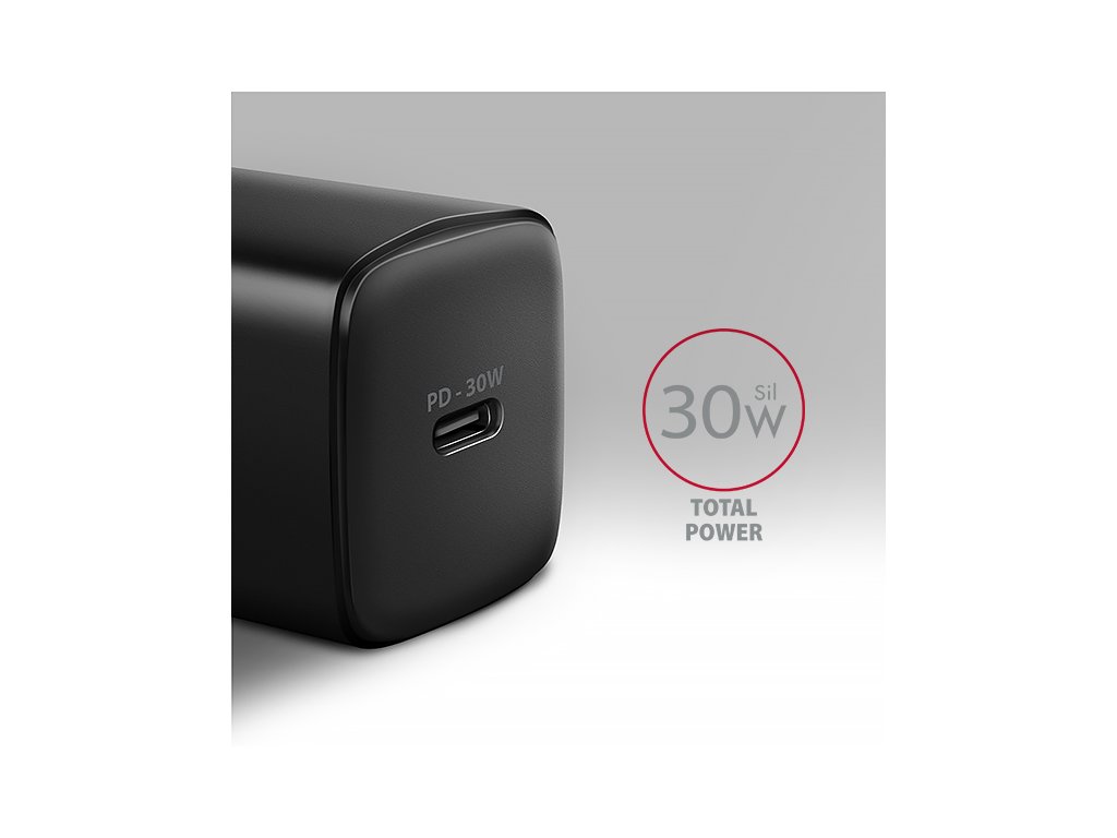 Kompaktní USB nabíječka do sítě AXAGON ACU-PD30 Sil pro rychlé nabíjení mobilních zařízení. Díky maximálnímu výkonu 30W nabíječka dobíjí telefony, tablety a další mobilní zařízení nejvyšší možnou rychlostí. Adaptér nabízí oboustranný USB-C konektor.Kompaktní velikost a vysoký výkon je daný použitou novou Sil technologií. Super silicon využívá vyspělé materiály na bázi křemíku. Nabíječka tak může dosáhnout menších rozměrů a současně bezpečného, stabilního a rychlého nabíjení. Účinnost je tak shodná s GaN technologií při zachování příznivé ceny. Nabíječka je vybavena výstupem Power Delivery 3.0 / Quick Charge 4+ USB typu C, což umožňuje rychlé nabíjení smartphonů a tabletů výkonem až 30W.