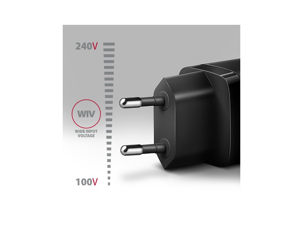 • Wide Input Voltage - funkce širokého rozsahu vstupního napětí, chrání adaptér proti podpětí a přepětí na vstupu a umožní použití více "národních napájecích standardů".