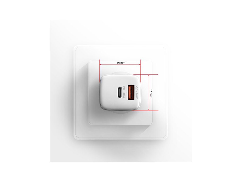 AXAGON ACU-PQ30W, Sil nabíječka do sítě 30W, 2x port (USB-A + USB-C), PD3.0/PPS/QC4+/SFC/AFC/Apple