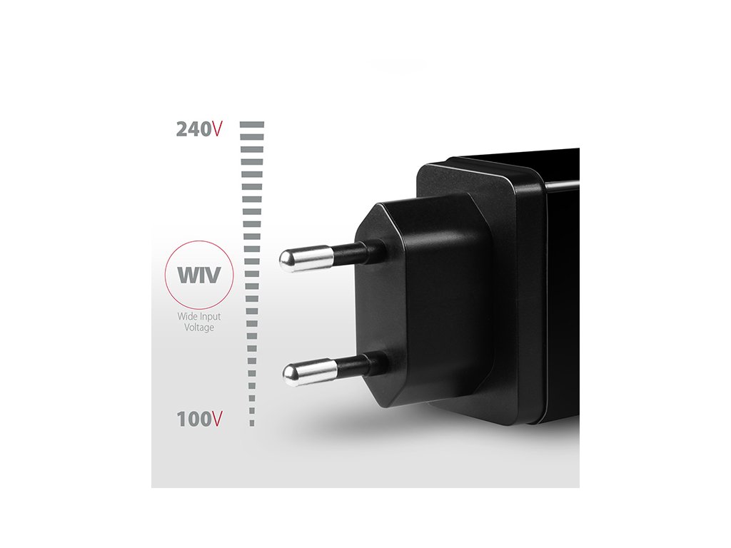 • Wide Input Voltage - funkce širokého rozsahu vstupního napětí, chrání adaptér proti podpětí a přepětí na vstupu a umožní použití více "národních napájecích standardů".