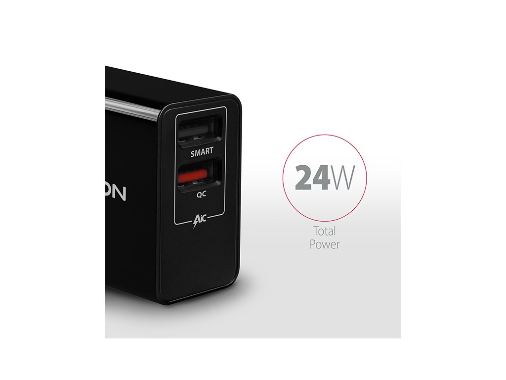 Univerzální USB nabíječka do sítě AXAGON ACU-QS24 pro rychlé nabíjení až dvou mobilních zařízení současně.Díky celkovému výkonu 24W nabíječka dobíjí mobilní zařízení nejvyšší možnou rychlostí.