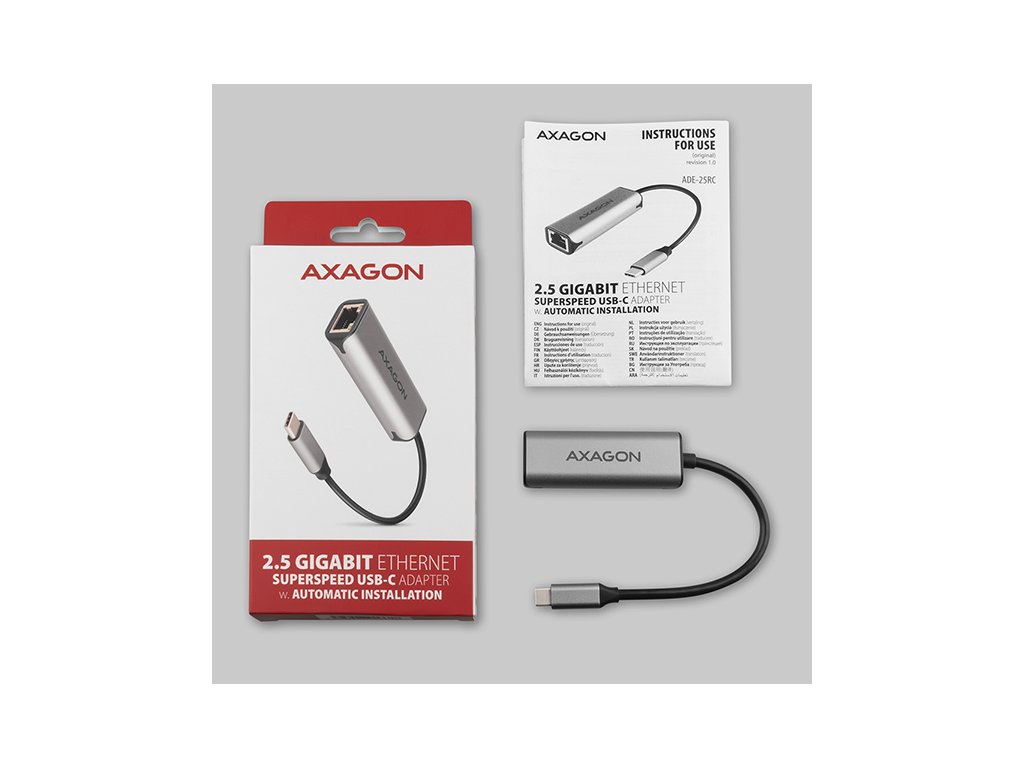 AXAGON ADE-25RC USB-A 3.2 Gen 1 - 2.5 Gigabit Ethernet síťová karta, Realtek 8156, auto install,šedá