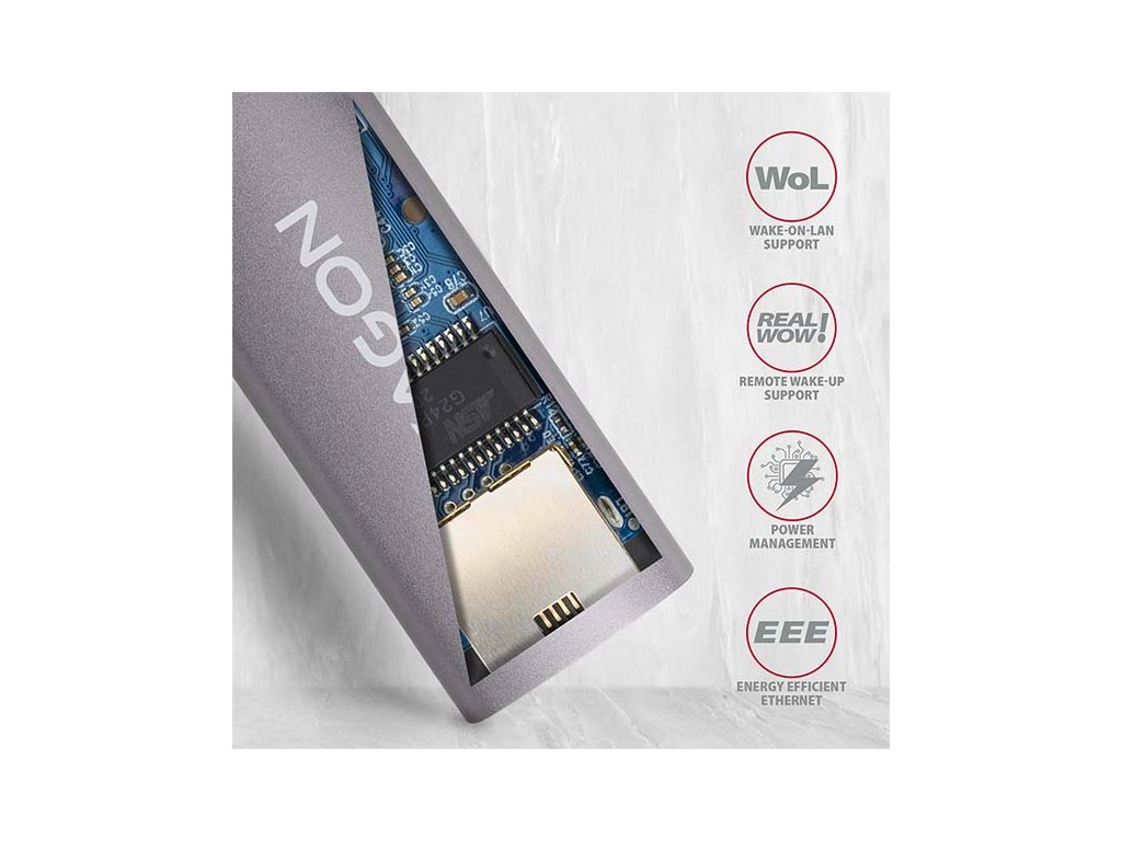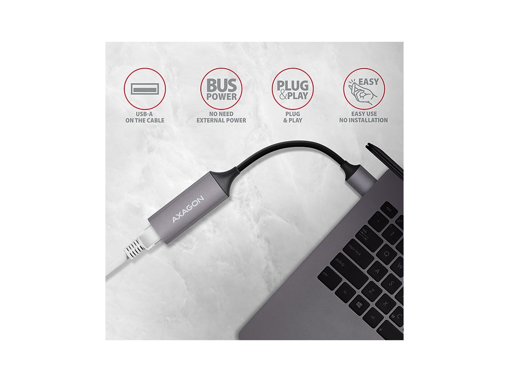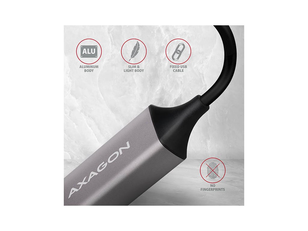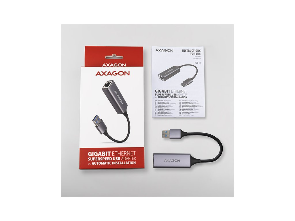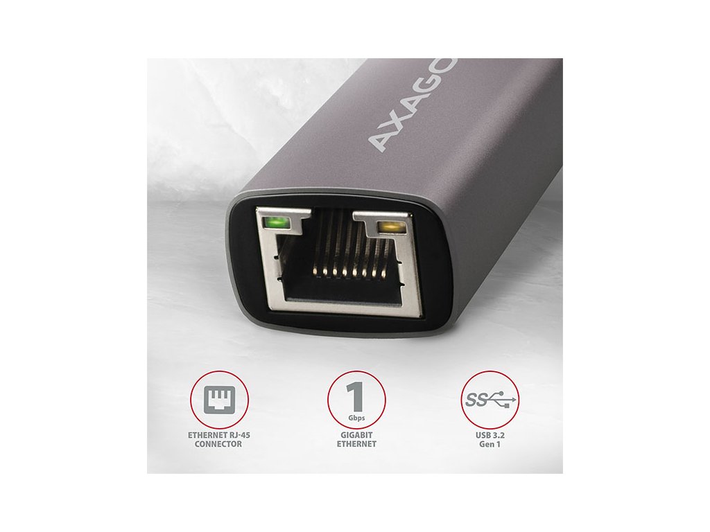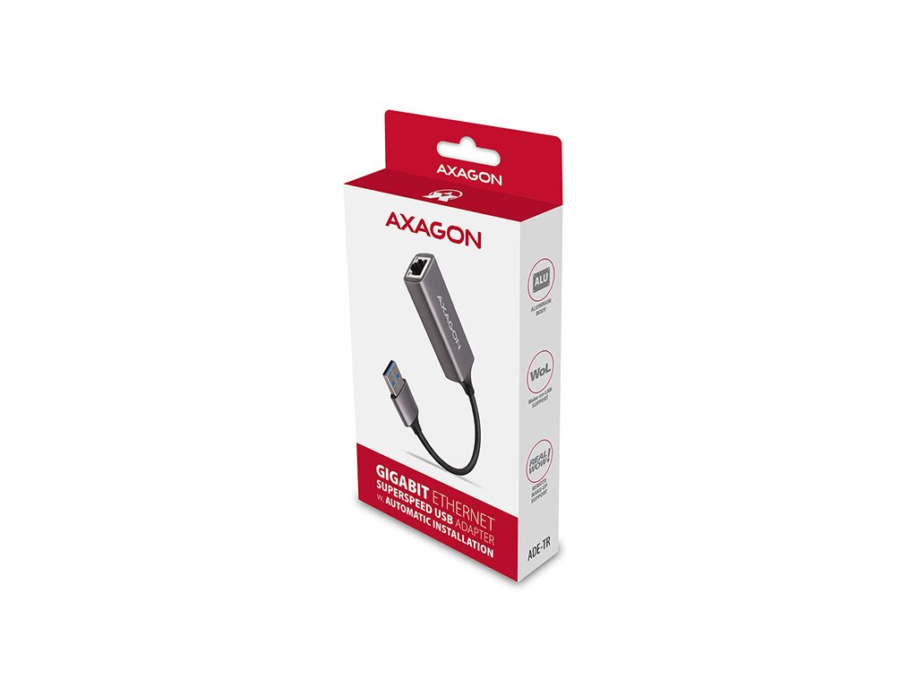 AXAGON ADE-TR, USB-A 3.2 Gen 1 - Gigabit Ethernet síťová karta, auto instal, titanově šedá