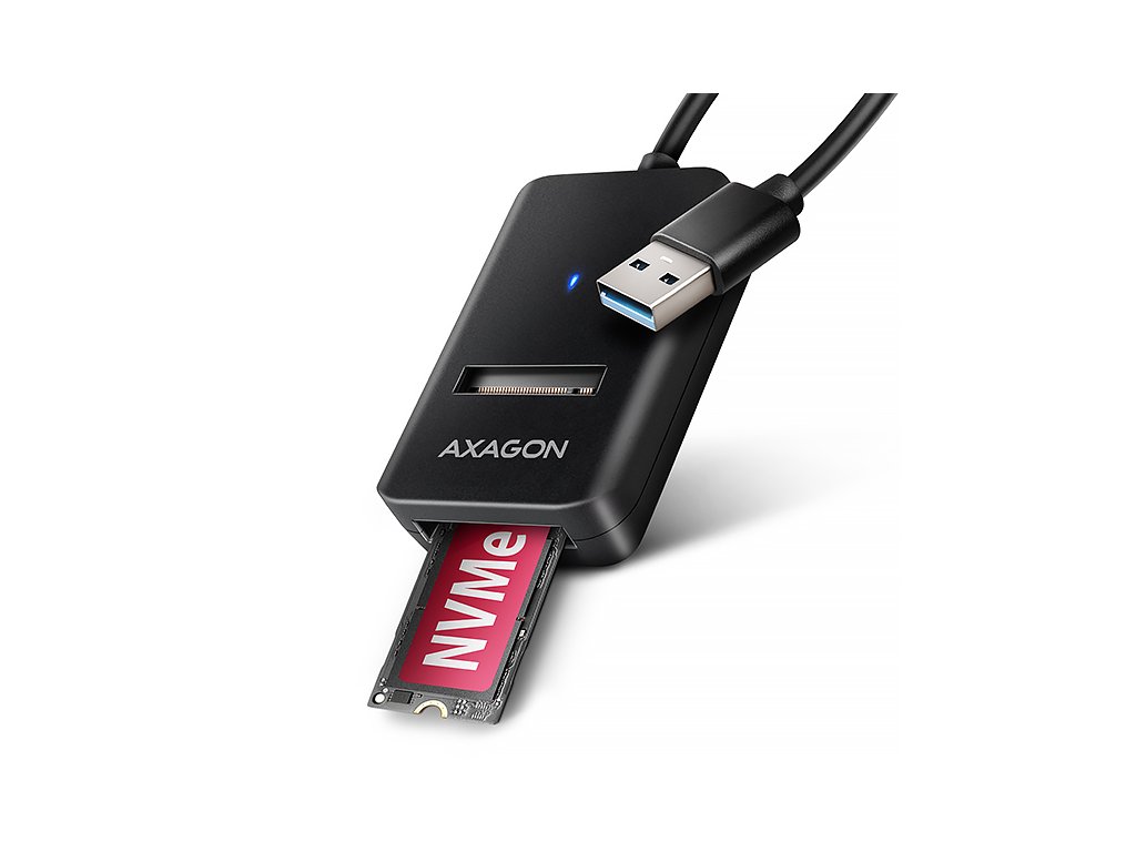 Unikátní vlastností, díky použitému čipsetu, je možnost použití jak M.2 NVMe tak i SATA disků. Nemusíte tak přemýšlet pro jaký typ M.2 disku je adapter určen, jednoduše přečte všechny typy. Další předností adaptéru je možnost velmi rychlého vložení disku do slotu adaptéru. Snadná je i výměna disků. Uvedené vlastnosti dělají z adaptéru šikovný a užitečný nástroj pro častou práci s různými druhy disků. Jedná se tak o ideálního pomocníka pro testování disků, přenos, zálohování a obnovu dat apod.