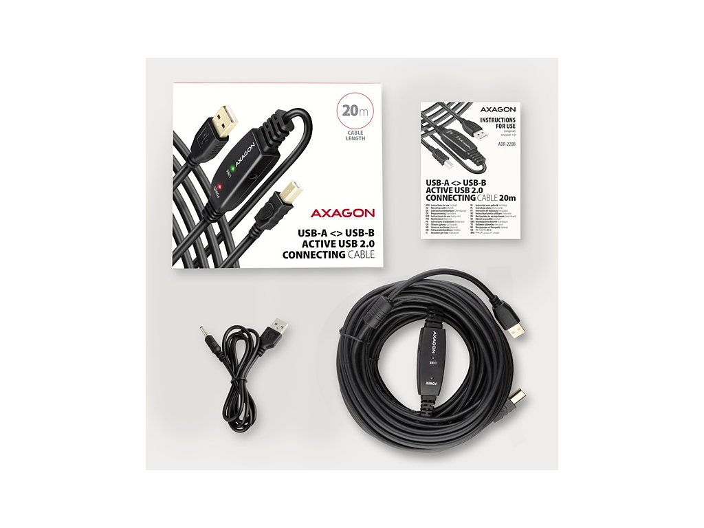 AXAGON ADR-220B, USB 2.0 A-M -> B-M aktivní propojovací / repeater kabel, 20m