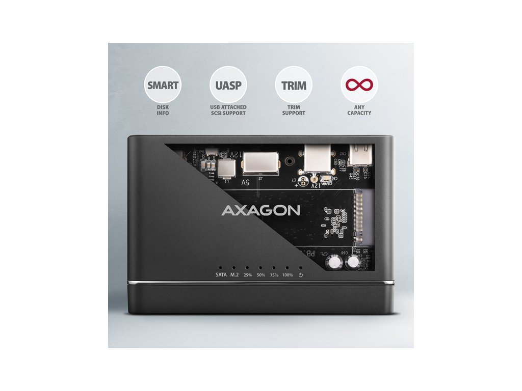 AXAGON ADSA-CC USB-C 10Gbps - NVMe M.2 SSD & SATA 2.5"/3.5" SSD/HDD CLONE MASTER 2