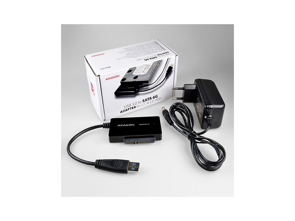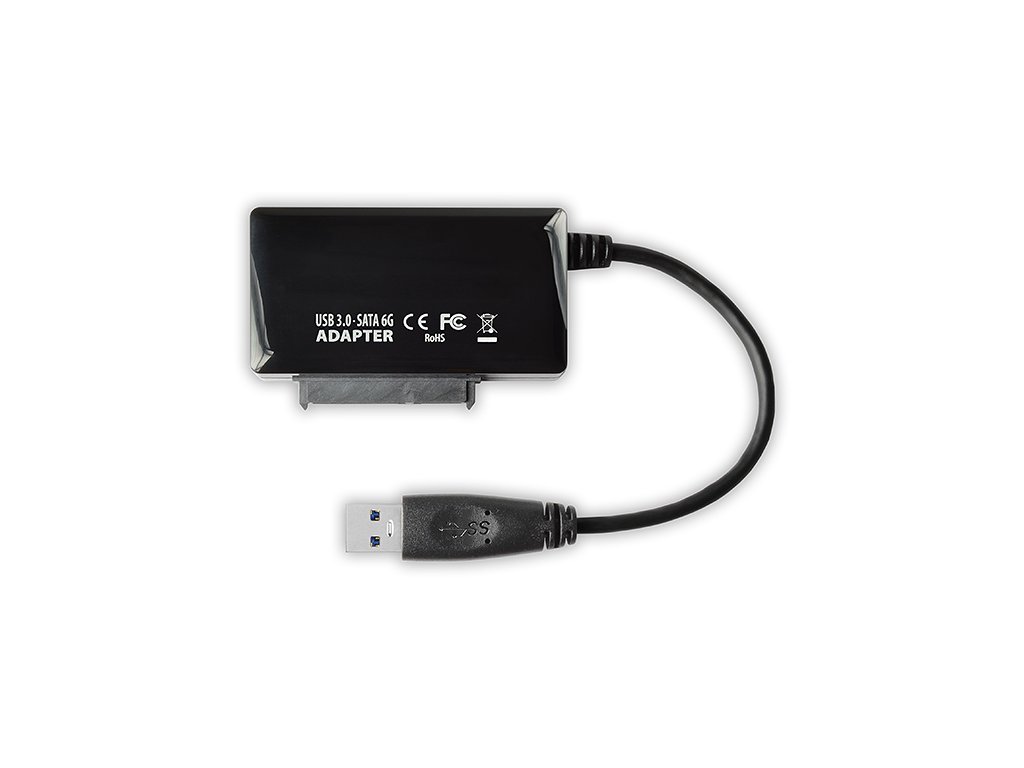 • USB 3.0 - SATA 6G adaptér vč. USB 3.0 kabelu délky 12 cm a napájecí adapter 100-240V / 12V-2A.