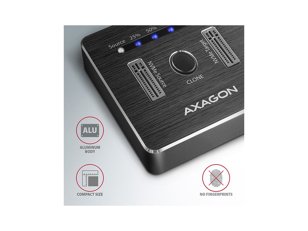 AXAGON ADSA-M2C, USB-C 3.2 Gen 2 - 2x M.2 NVMe SSD CLONE MASTER dokovací stanice