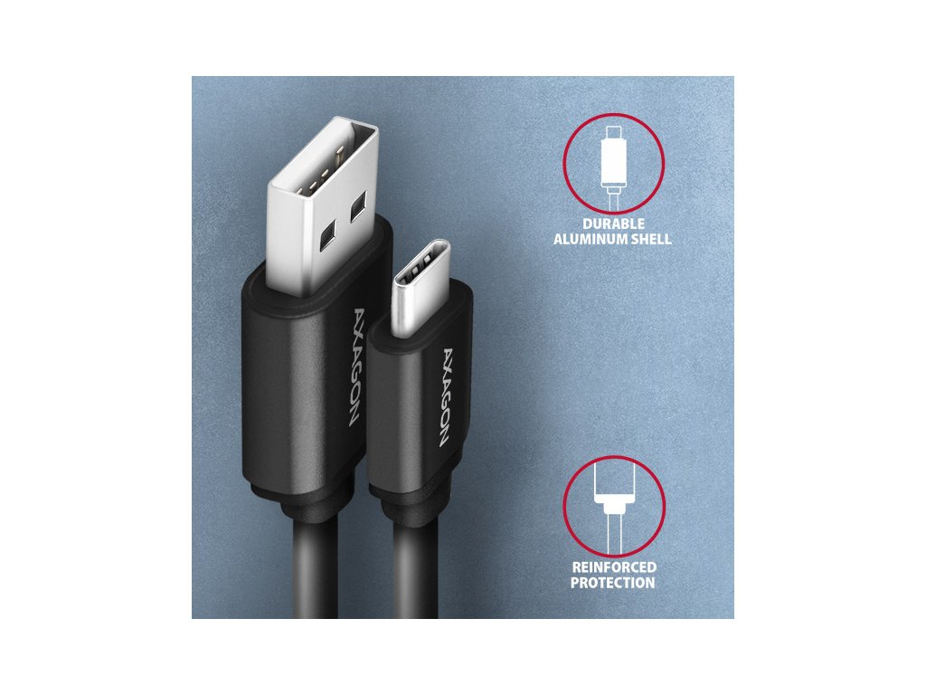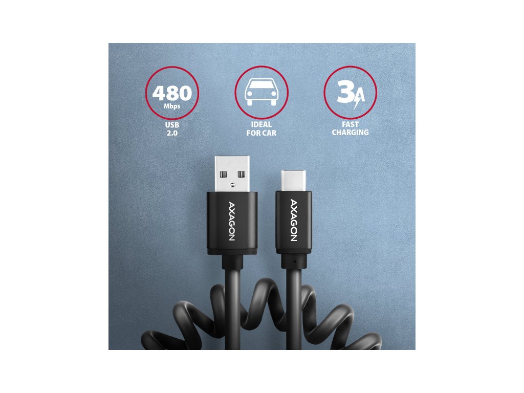 AXAGON BUCM-AM20TB, TWISTER kabel USB-C <-> USB-A, 1.1m, USB 2.0, 3A, ALU, tpe, černý