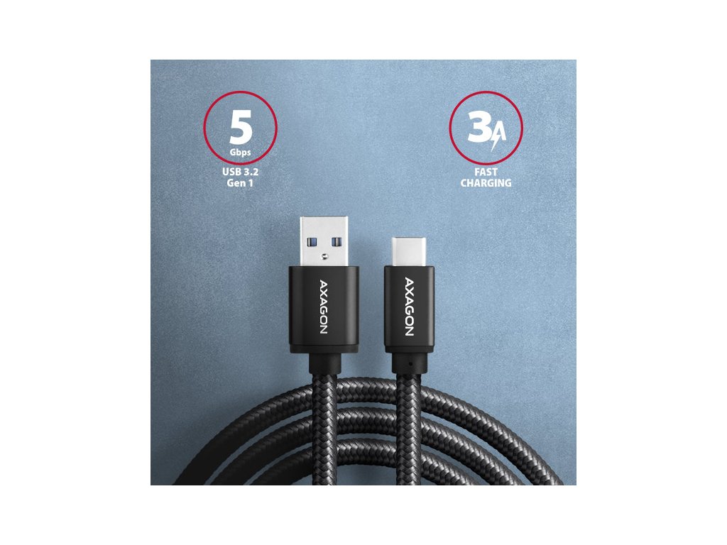 AXAGON BUCM3-AM20AB, SPEED kabel USB-C <-> USB-A, 2m, USB 3.2 Gen 1, 3A, ALU, oplet, černý