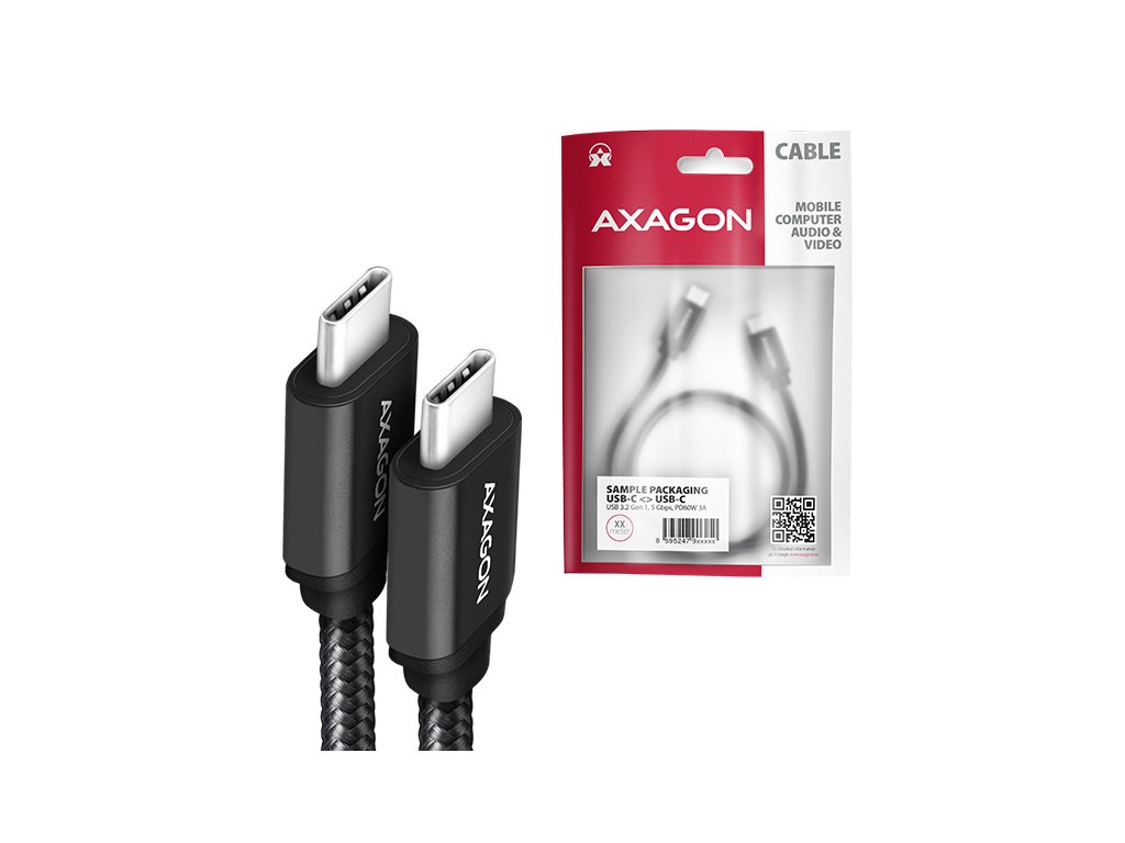 AXAGON BUCM3-CM10AB, SPEED kabel USB-C <-> USB-C, 1m, USB 3.2 Gen 1, PD 60W 3A, ALU, oplet, černý