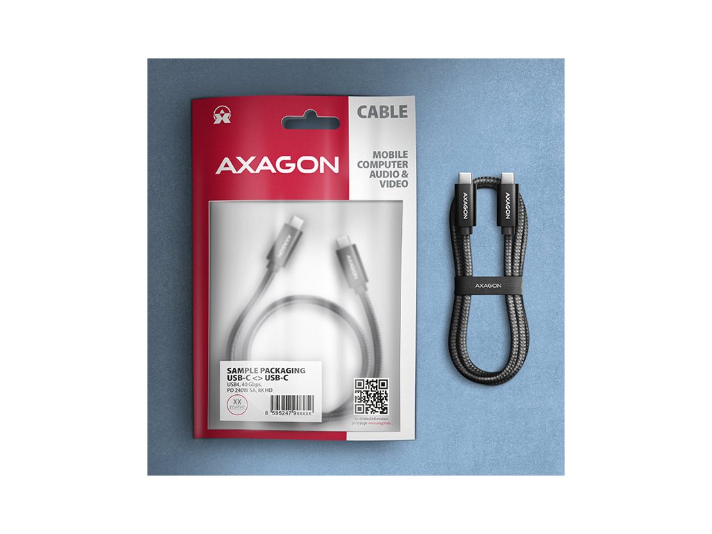 AXAGON BUCM4X-CM05AB NewGEN+ kabel USB-C <-> USB-C, 0.5m, USB4 Gen 3×2, PD 240W 5A, 8K HD, ALU,oplet