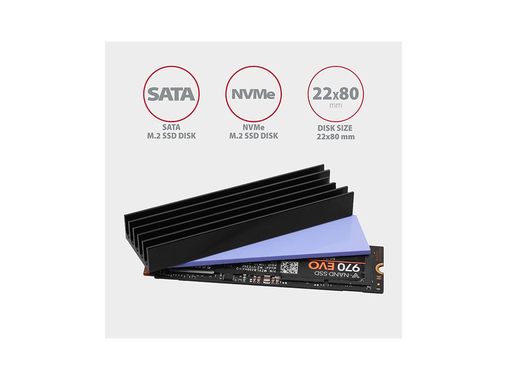 AXAGON CLR-M2L10, hliníkový pasivní chladič pro M.2 2280 SSD, výška 10 mm