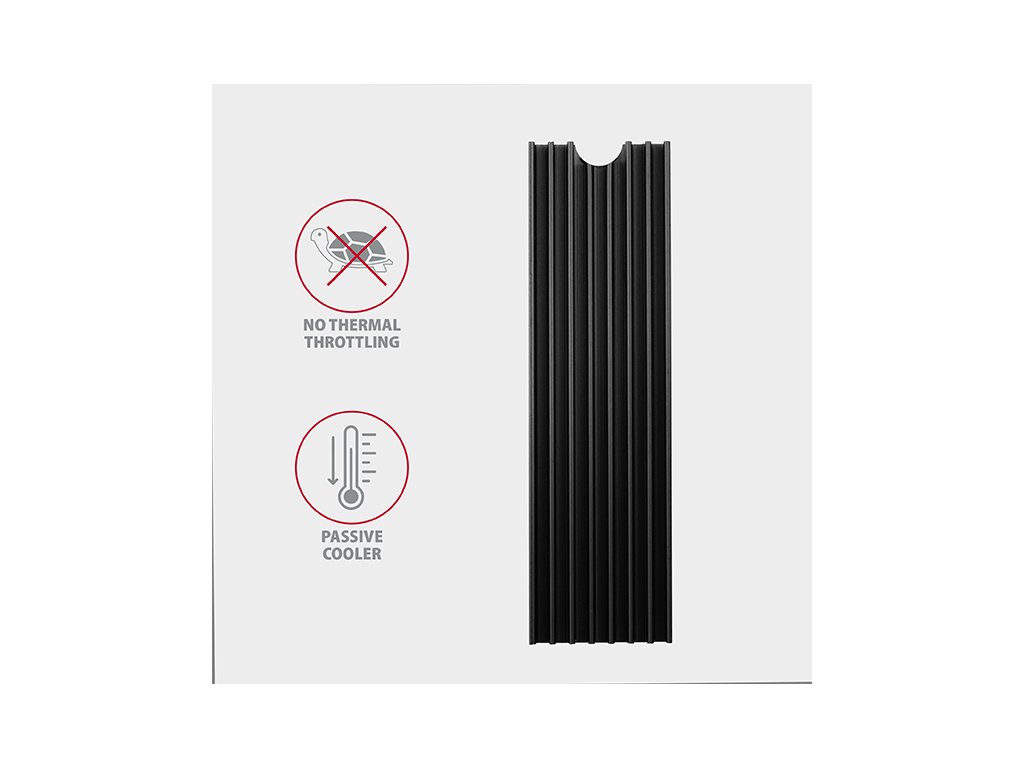 Pasivní chladič AXAGON CLR-M2L6 ALU pro ideální chlazení výkonných M.2 SSD disků, zejména NVMe. Univerzální heatsink lze použít na M.2 karty o rozměru 22 x 80 mm. Dvě dodávané teplovodivé podložky umožní montáž chladiče pro všechny jednostranné i oboustranné M.2 SSD disky.Žebrovaný hliníkový chladič vysoký 6 mm napomáhá lepšímu odvodu tepla vzniklého při provozu M.2 SSD disku a umožňuje tak snížit teplotu disku až o 20 °C. Prodlužuje se tak životnost SSD disku a zamezí se zpomalování rychlosti disku tzv. „Thermal Throttling“.