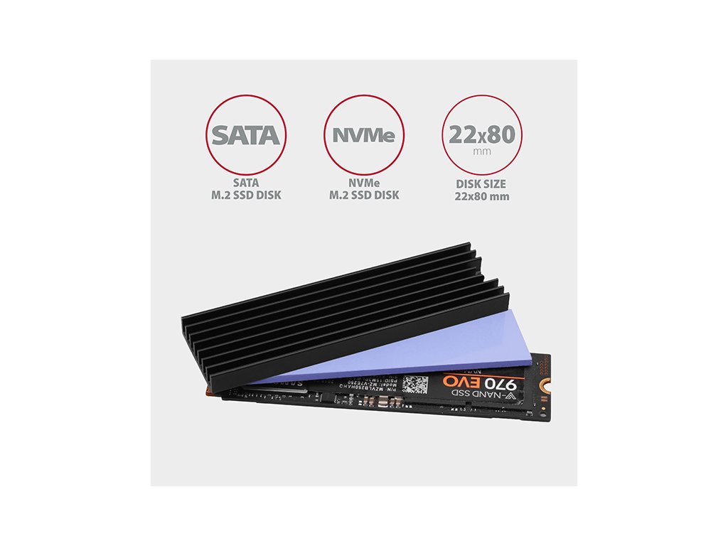 Díky snadné montáži a kompaktním rozměrům lze chladič použít nejen s M.2 adaptéry AXAGON, ale také s M.2 (NGFF) sloty na základních deskách apod. Chladič má ideální poměr výšky profilu a efektivity chlazení.