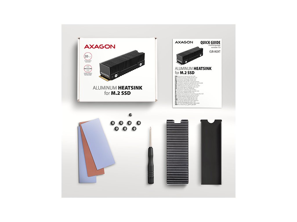 AXAGON CLR-M2XT, hliníkový pasivní chladič pro jedno i oboustranný M.2 SSD disk, výška 24 mm