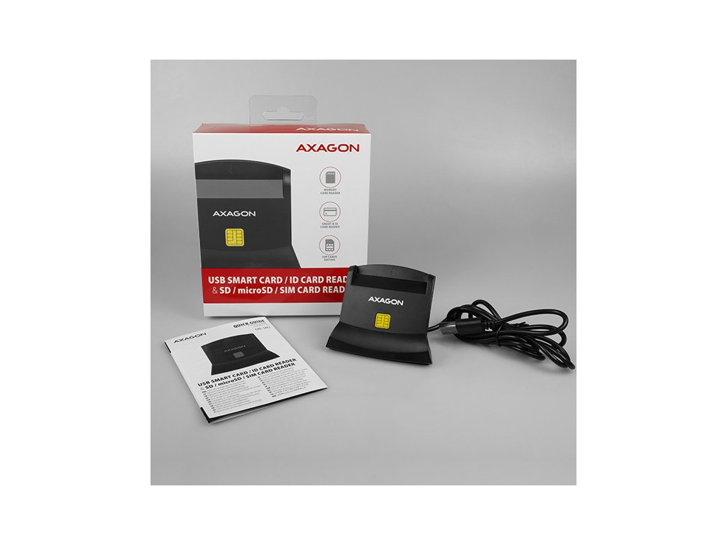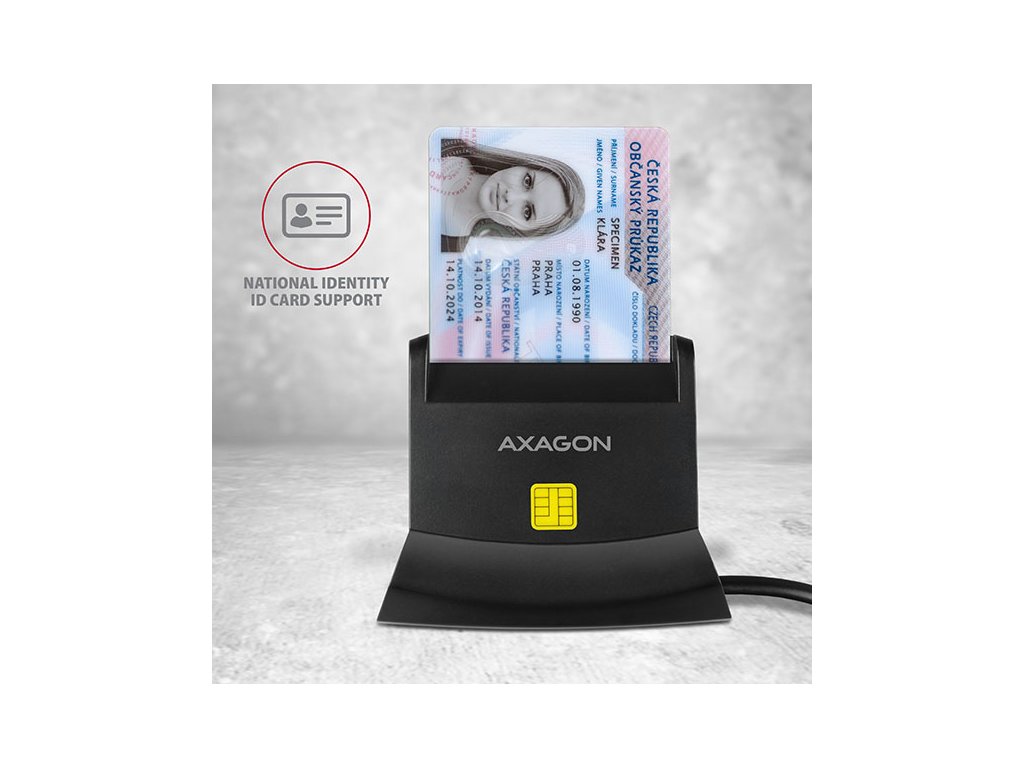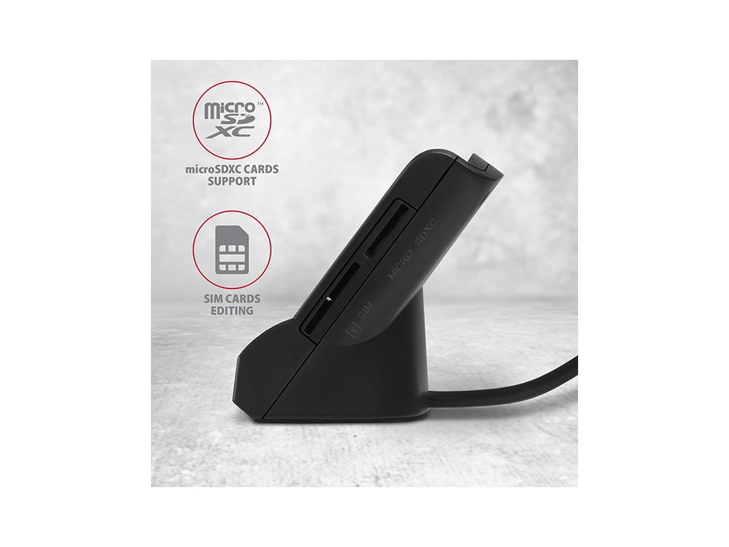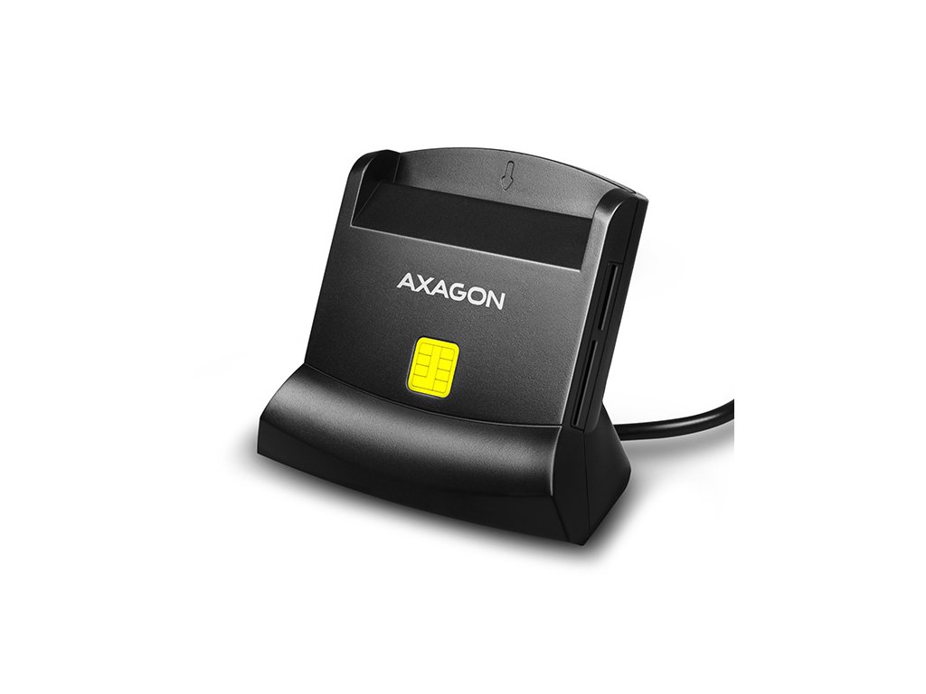 Stojánková stolní čtečka Smart card / ID card AXAGON CRE-SM2 s USB 2.0 rozhraním obsahuje navíc sloty pro paměťové karty SD, microSD a SIM karty. Card reader podporuje všechny běžné formáty Smart karet, čipových karet a dalších kontaktních karet včetně bankovních platebních karet. Čtečka je plně kompatibilní s aplikací eObčanka.Díky slotu pro SIM kartu včetně SW pro správu SIM, slotům pro SD a microSD karty lze čtečku využít i pro zálohu a přenos dat.
