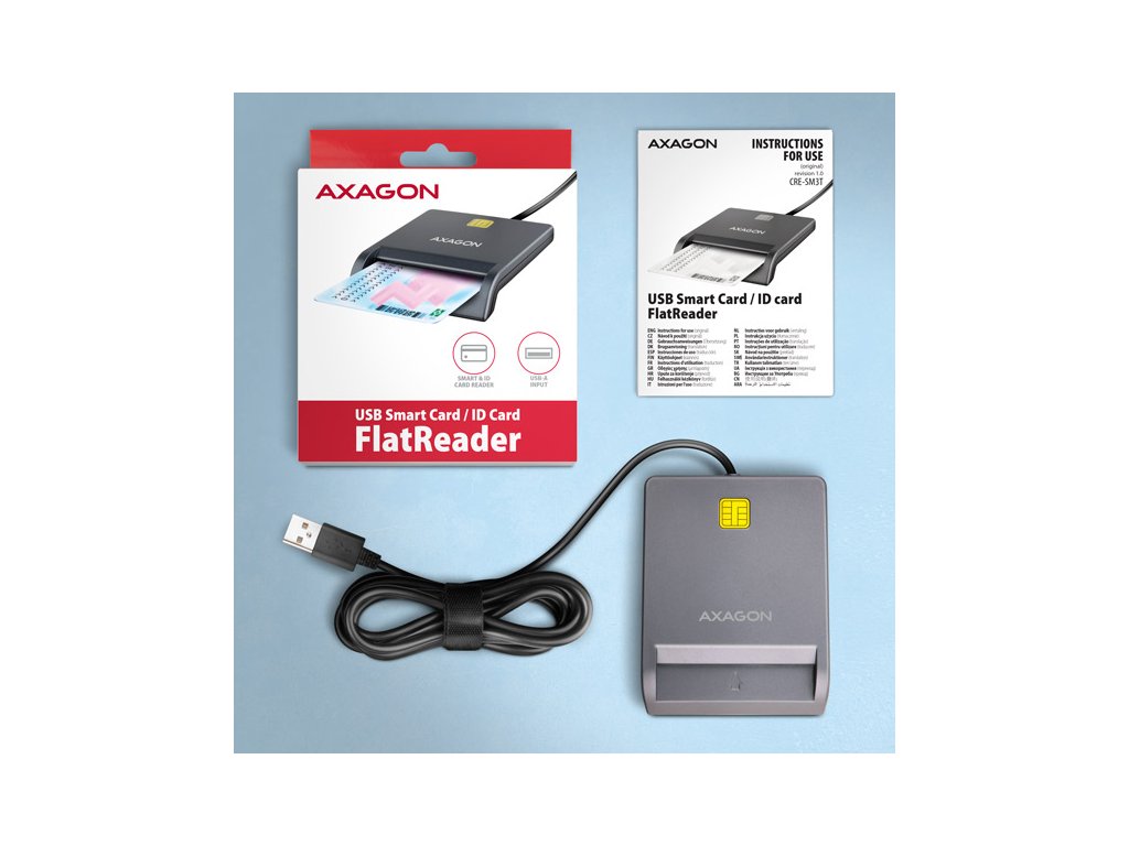 AXAGON CRE-SM3T, USB-A FlatReader čtečka kontaktních karet Smart card (eObčanka), kabel 1.3m