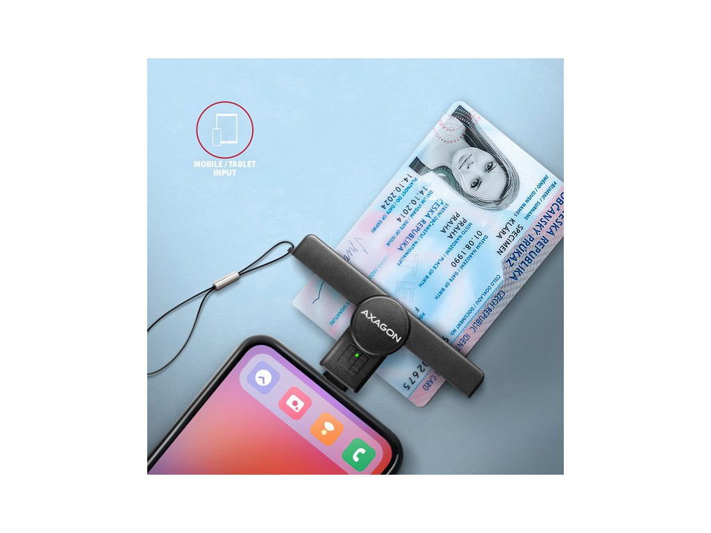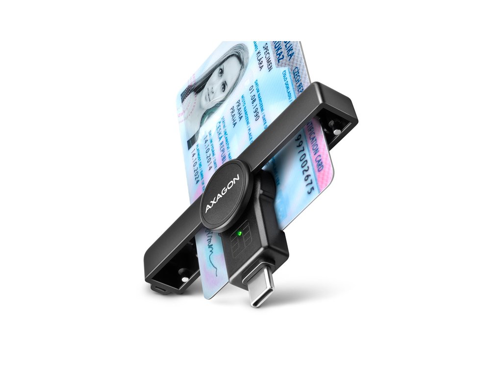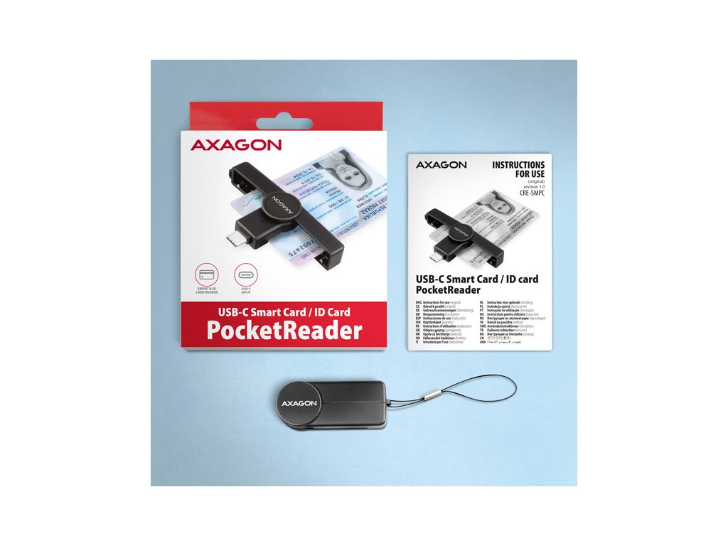 Skládací kapesní čtečka Smart card / ID card AXAGON CRE-SMPC PocketReader s USB-C 480Mbps rozhraním. Je vhodná zejména jako čtečka občanských průkazů pro použití s mobilními telefony, které disponují USB-C vstupem. Moderní oboustranný USB-C konektor usnadňuje použití čtečky, kdy odpadá potřeba správné orientace konektoru při zapojení do počítače nebo telefonu.Card reader podporuje všechny běžné formáty kontaktních Smart karet, čipových karet a dalších karet včetně kontaktních bankovních platebních karet nebo kontaktních elektronických občanských průkazů. Čtečka je plně kompatibilní s aplikací eObčanka (CZ) nebo eID klient (SK).
