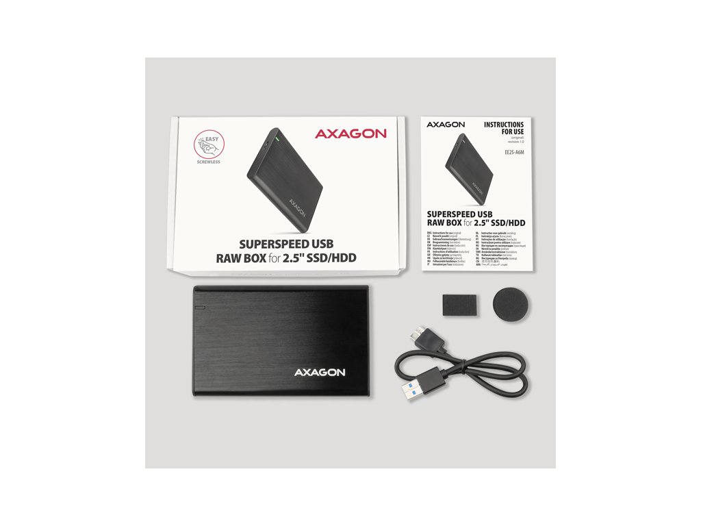 AXAGON EE25-A6M, USB 3.2 Gen 1 - SATA 6G 2.5" kovový RAW box, bezšroubkový