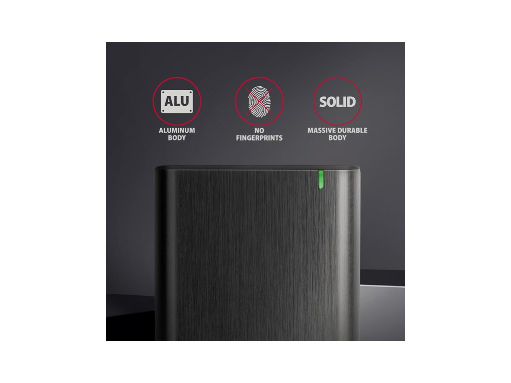 Unikátní bezšroubkové otevírání boxu usnadňuje montáž i demontáž disku. Vnitřní rámeček boxu dobře fixuje a chrání vložený disk. Dodávané pěnové podložky umožňují použít i 7 mm HDD a SSD. Hliníkové tělo boxu napomáhá chlazení boxu a umožňuje snadnou výměnu disku. Elegantní, kartáčovaný povrch boxu brání nežádoucím otiskům prstů.