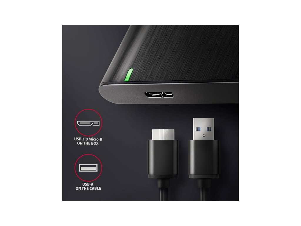 Bezšroubkový hliníkový externí AXAGON EE25-A6M RAW box s USB 3.2 Gen 1 (USB 3.0) rozhraním určený pro 2.5" SATA pevné disky nebo SSD. Připojení k počítači umožňuje USB Micro-B konektor na boxu spolu s dodávaným kabelem USB Micro-B -> USB-A.SATA 6G rozhraní s podporou UASP dovolí užívat si rychlost moderních SSD disků. Podpora funkce TRIM pro omezení pozvolné degradace výkonu SSD v čase. Čtení S.M.A.R.T. informací monitorujících kondici externího disku. Podpora uspávání připojeného disku i boxu.