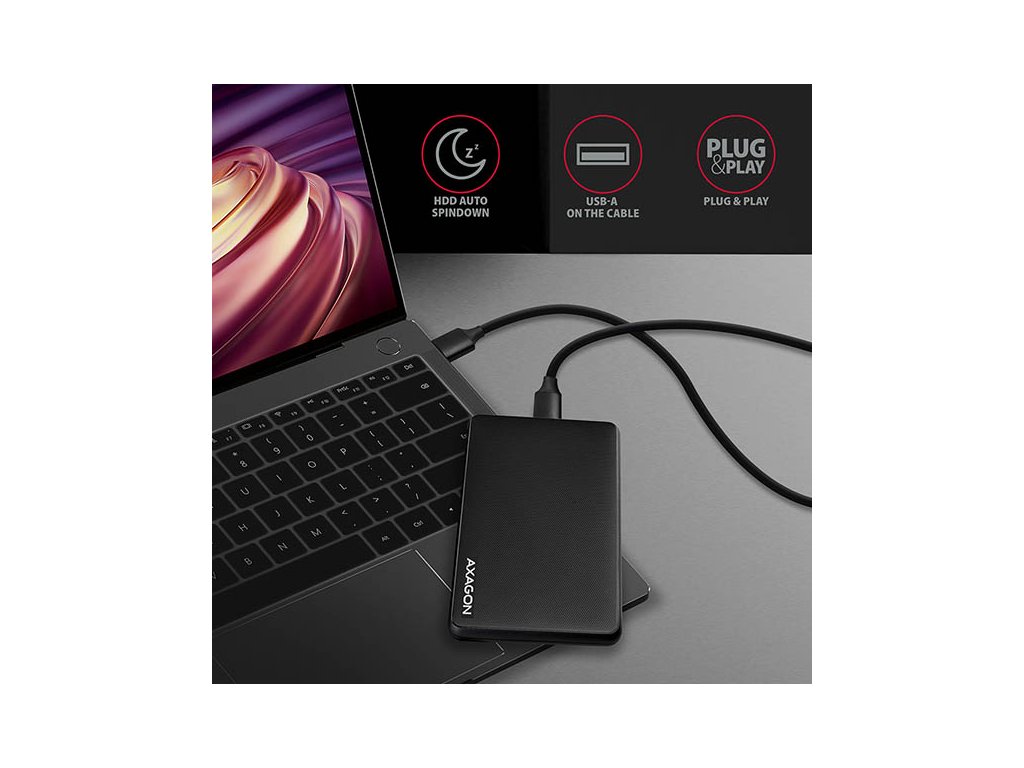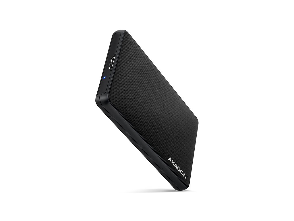 Lehký bezšroubkový externí AXAGON EE25-SL SLIDE BOX s USB 3.2 Gen 1 (USB 3.0) a SATA 6G rozhraním je určen pro všechny 2.5" SATA pevné disky nebo SSD.SATA 6G rozhraní s podporou UASP dovolí užívat si rychlost moderních SSD disků. Podpora funkce TRIM pro omezení pozvolné degradace výkonu SSD v čase. Čtení S.M.A.R.T. informací monitorujících kondici externího disku. Podpora uspávání připojeného disku i boxu.