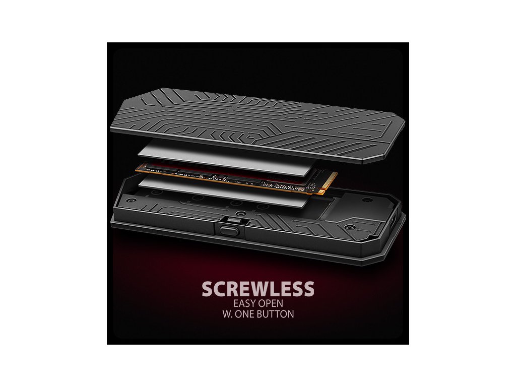 Stylový rámeček pro M.2 disky vás zaujme prémiovým herním designem v černé barvě s elegantním povrchem, který dokonale podtrhne váš gaming setup. RGB LED indikace dodává stylový vzhled a dokonale ladí s jakýmkoliv herním notebookem, čímž ještě více umocňuje atmosféru vašeho herního prostředí.