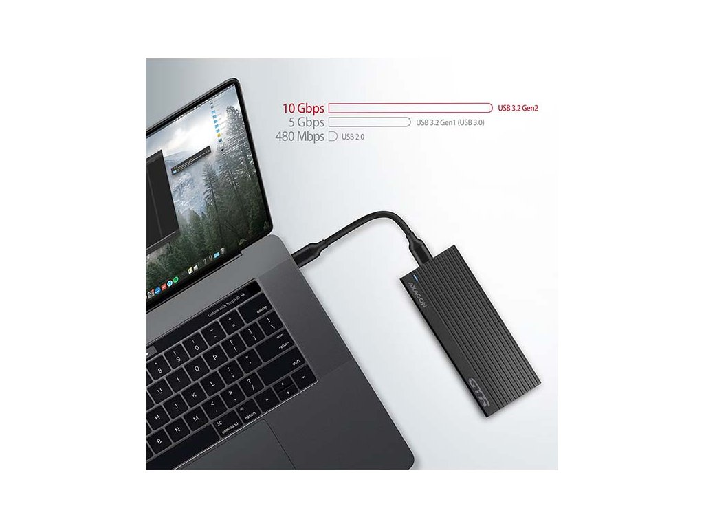 SuperSpeed USB 10 Gbit/s rozhraní dovolí užívat si rychlost moderních M.2 SSD disků. Díky rychlému USB 3.2 Gen 2 rozhraní je přenosová rychlost až 10Gb/s.