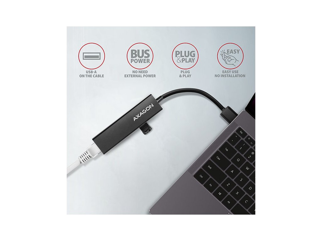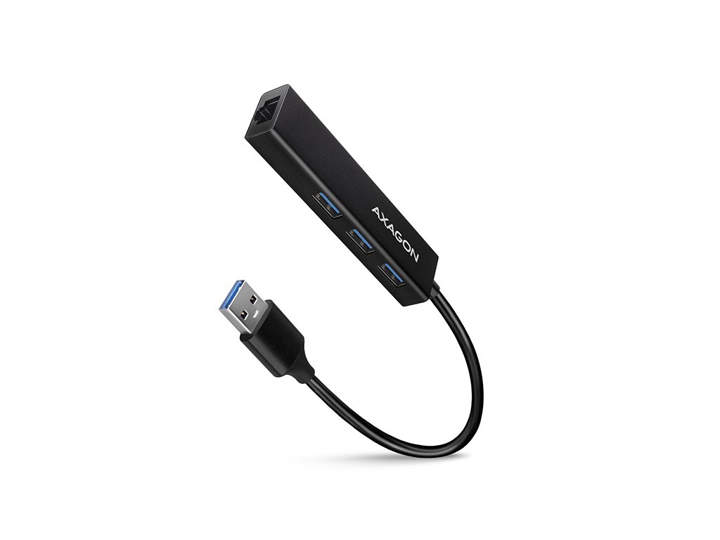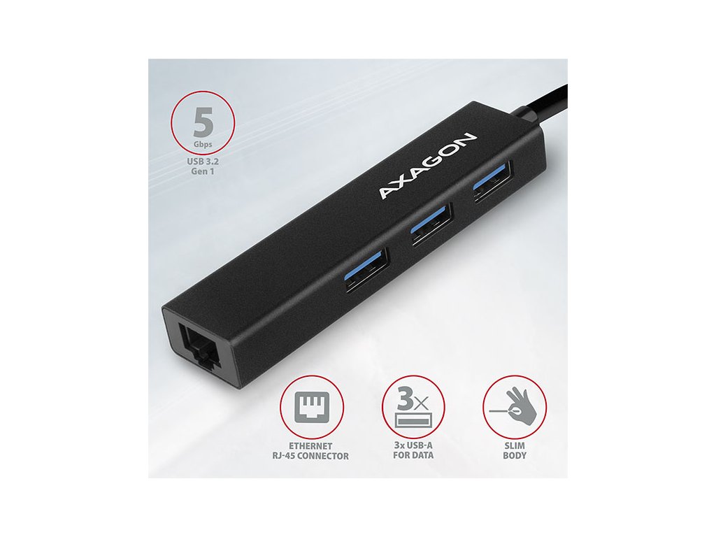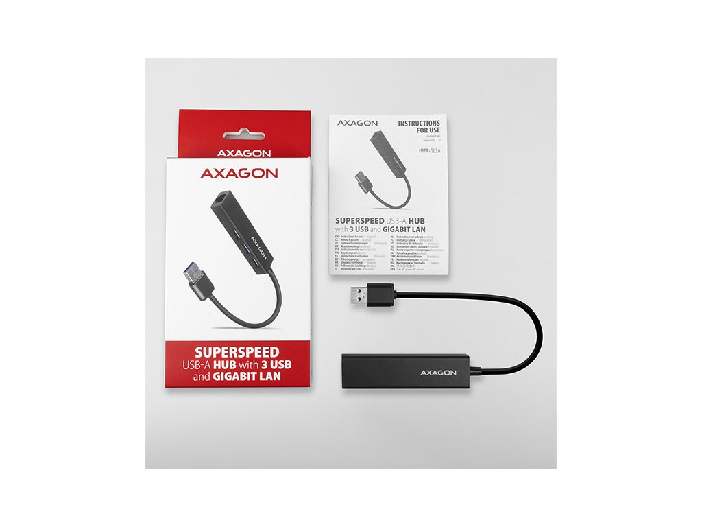 AXAGON HMA-GL3A, USB 3.2 Gen 1 hub, porty 3x USB-A + Gigabit Ethernet, kovový, kabel USB-A 20cm