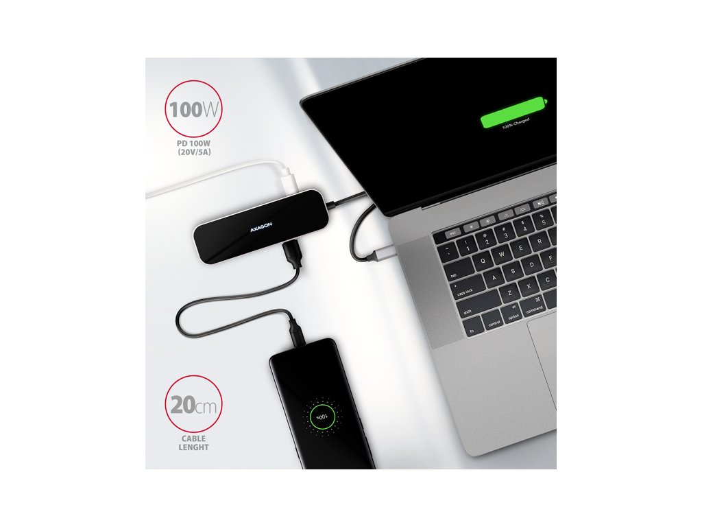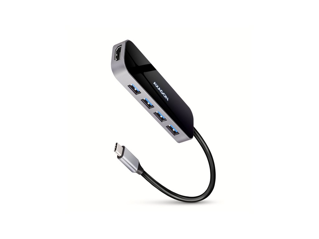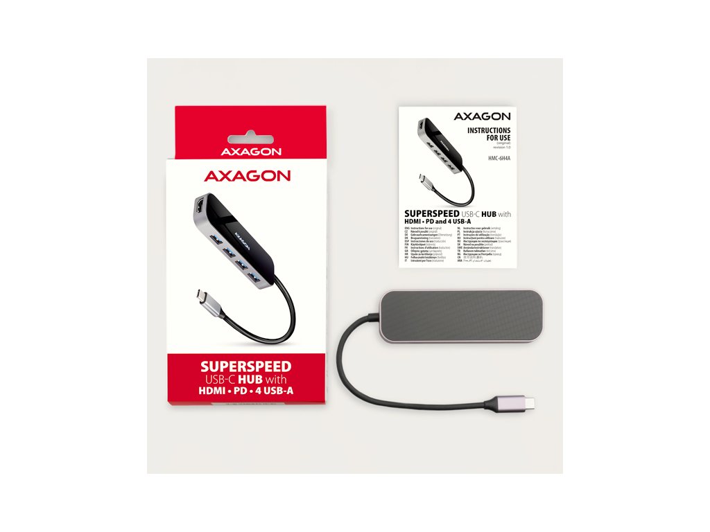 AXAGON HMC-6H4A, USB 3.2 Gen 1 hub, porty 4x USB-A, HDMI 4k/30Hz, PD 100W, kabel USB-C 20cm