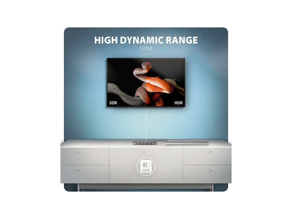 • Podpora HDR (High Dynamic Range, 10 bit support) - realistická reprodukce světlých a tmavých detailů.