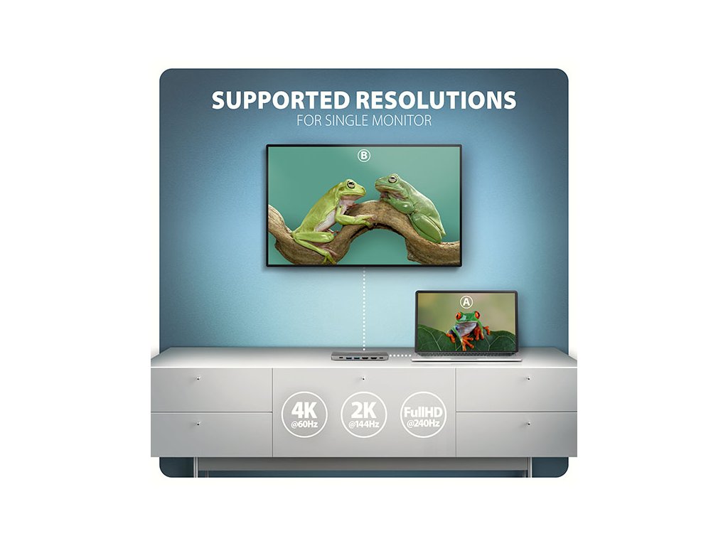 • Pro dosažení maximálních hodnot rozlišení a frekvencí na video výstupech je nutné hub zapojit do USB-C portu s podporou DisplayPort Alternate Mode (DP Alt Mode) verze min. 1.4 nebo do USB-C portu s podporou min. Thunderbolt 3. Dále je nutný vhodný aktualizovaný OS a aktuální grafické ovladače.