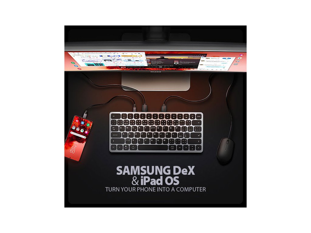Multiportový hub s klávesnicí je ideální zejména pro uživatele telefonů a tabletů Samsung s podporou DeX řady Z Fold (od Fold3), Galaxy S (od S9), Note (od Note8) a Galaxy Tab S (od S4 mimo verzí Lite a FE). Dock také umožňuje desktopový režim pro tablety Apple iPad Pro a iPad Air (od 2022). Kromě toho zajišťuje kompatibilitu s iPad mini (od 2021) a s telefony iPhone 15 Pro / Pro Max, přičemž obraz se přenáší prostřednictvím zrcadlení.