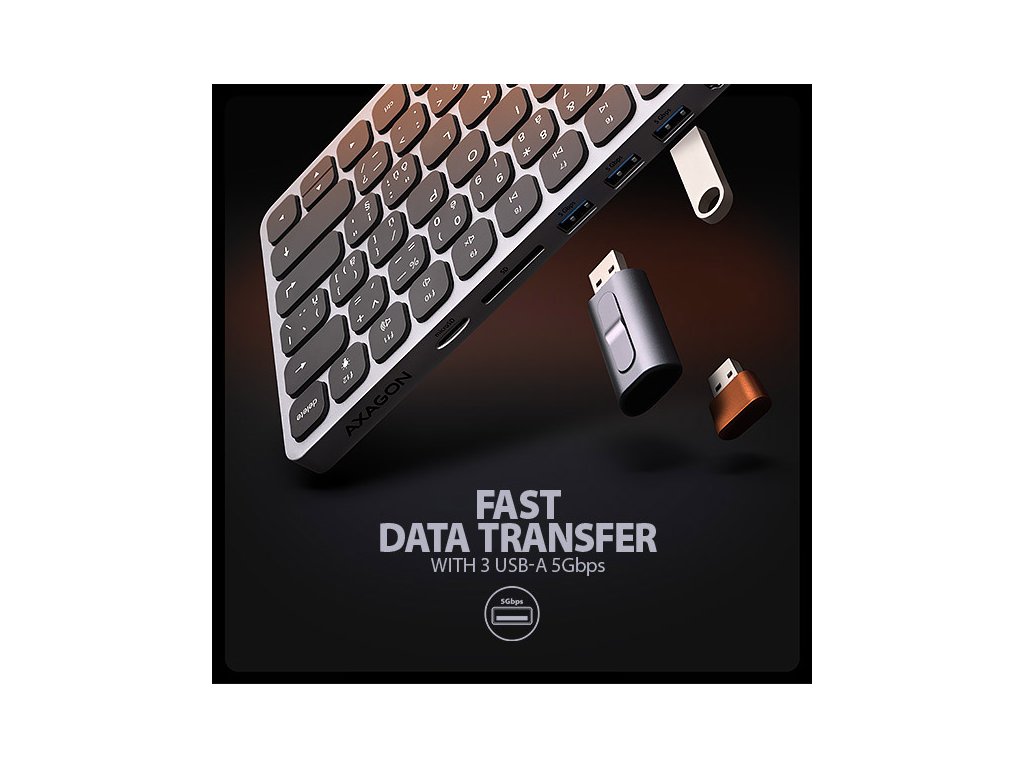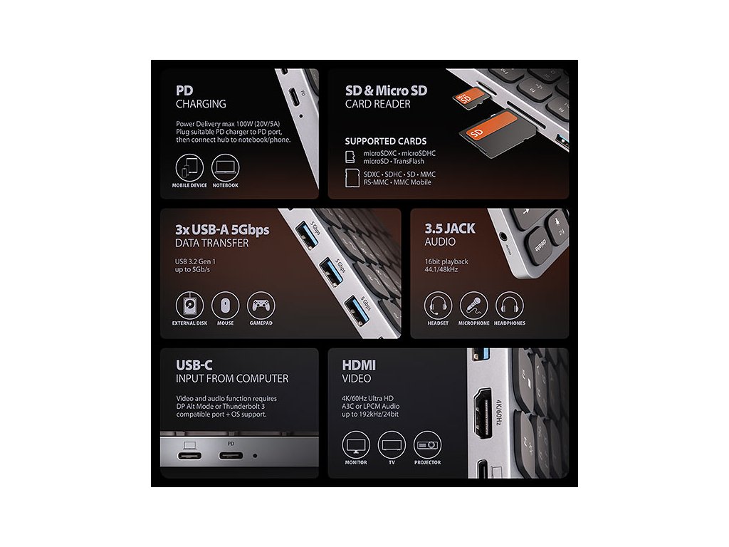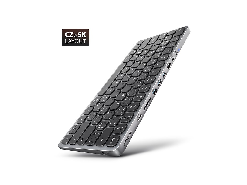 AXAGON HMC-KB-CS, USB 5Gbps hub s CZ/SK klávesnicí, HDMI 4K/60Hz, 3x USB-A, SD/mSD, audio, PD 100W