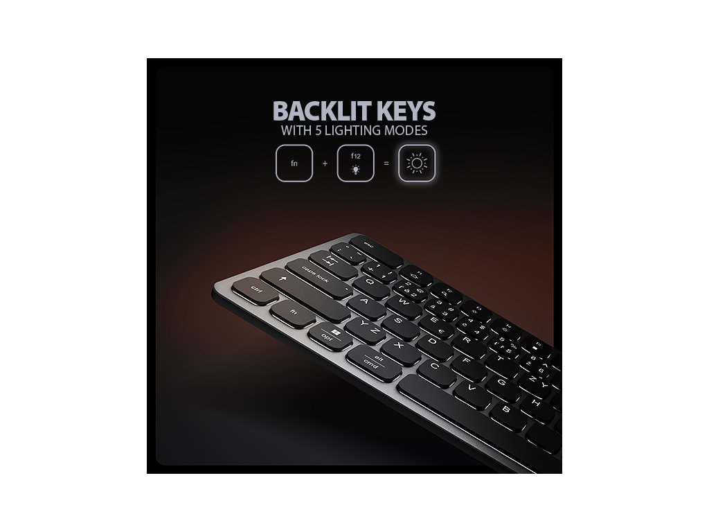 • Bílé podsvícení kláves s nastavením čtyř stupňů intenzity svitu a vypnutím podsvícení (f12).