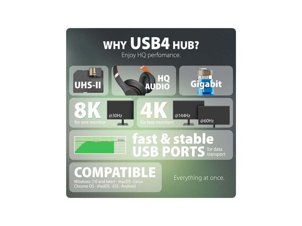 • Kompatibilní s Thunderbolt 3/4, USB 10Gbps, USB 5Gbps.