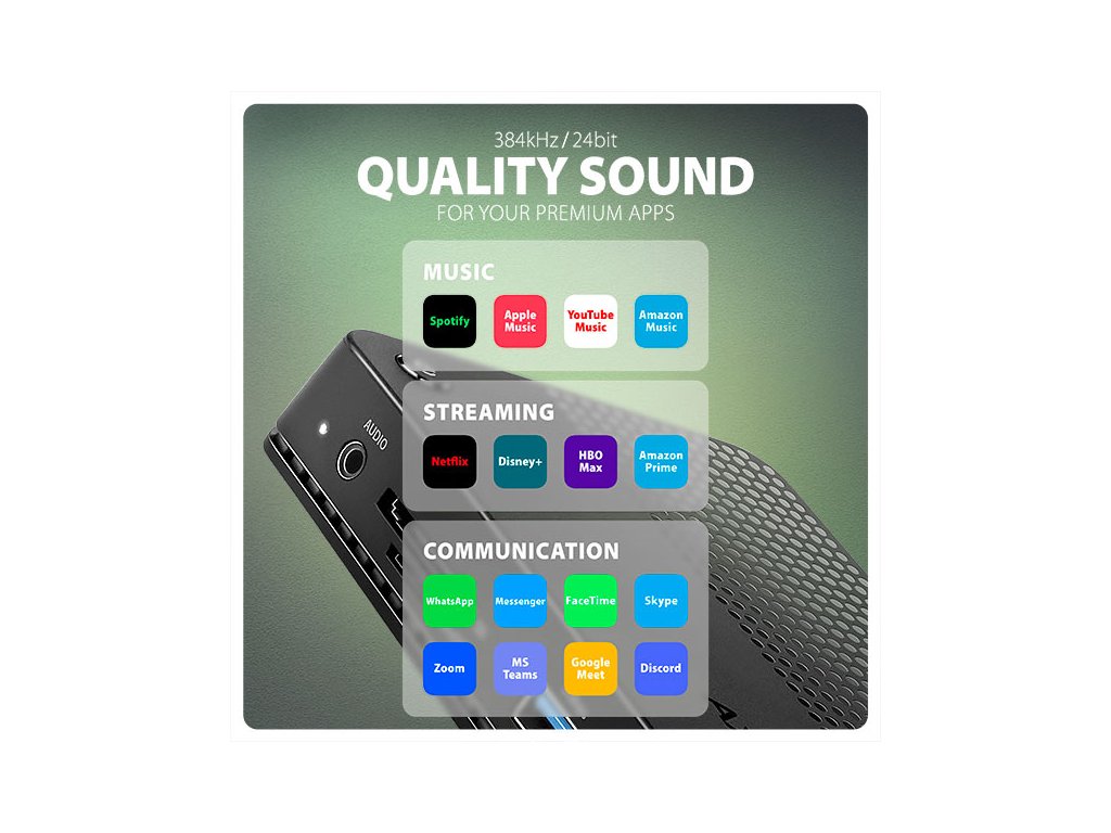• Podpora vzorkovací frekvence až 192 kHz a až 24bitového zvuku – závisí na zdrojovém a koncovém zařízení, tj. notebooku/telefonu a TV/monitoru/AV receiveru.