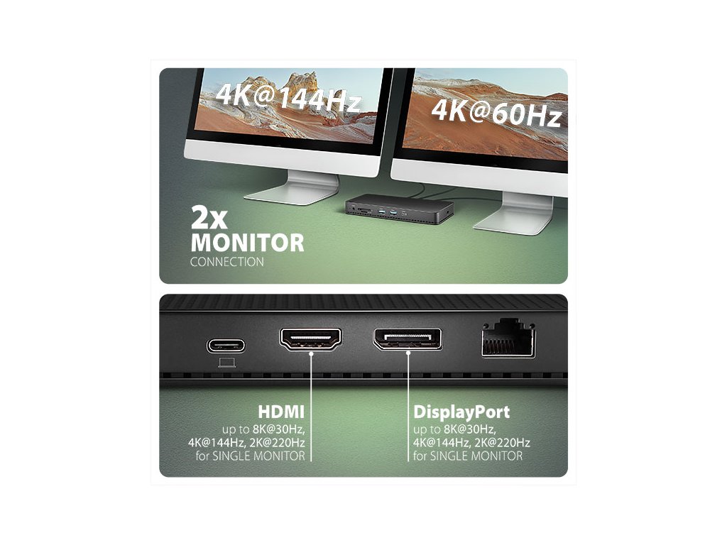 • 2 monitory - až 2x 4K/60Hz Ultra HD, 2x 2K/144Hz Quad HD, 2x 1080p/240Hz Full HD